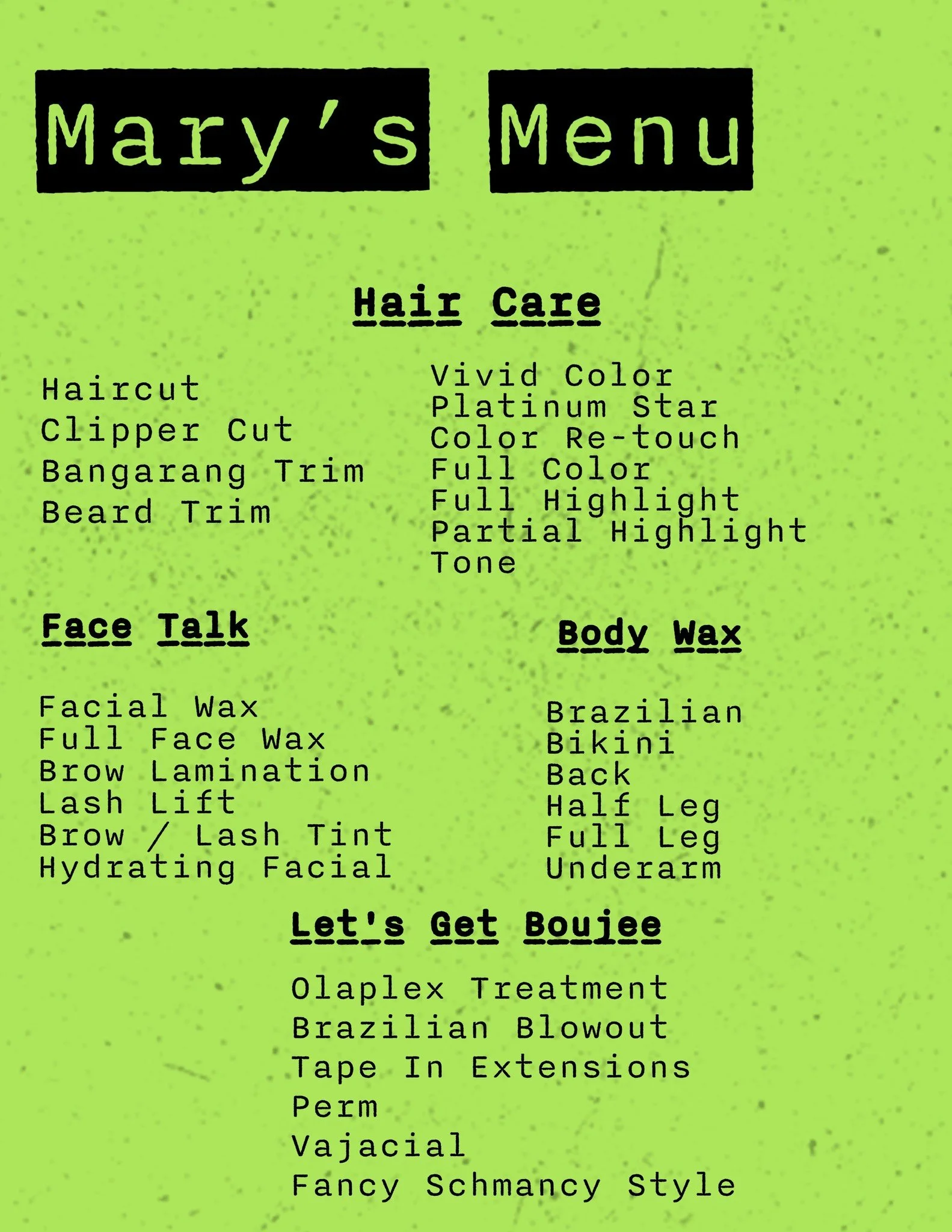 Mary Francis has been in the industry for 12 years and graduated from Capri College in Davenport, Iowa. Along with being a hairstylist, she also offers body waxing! Mary is unique because when she isn't working in the salon, she is attending protests for equal rights and running a burlesque troop. Her energy is one of a kind and her laughter is infectious. We are so excited to have her as a part of our team and can't wait to watch her flourish!